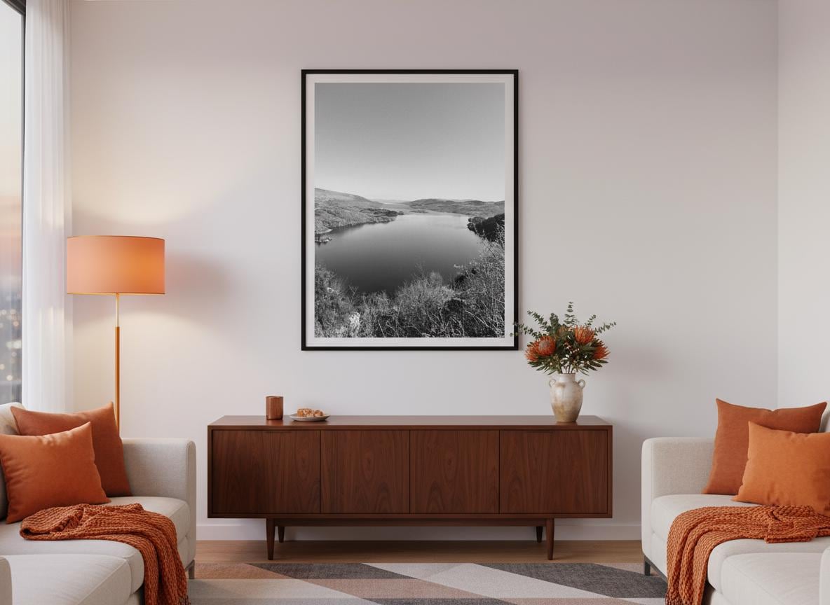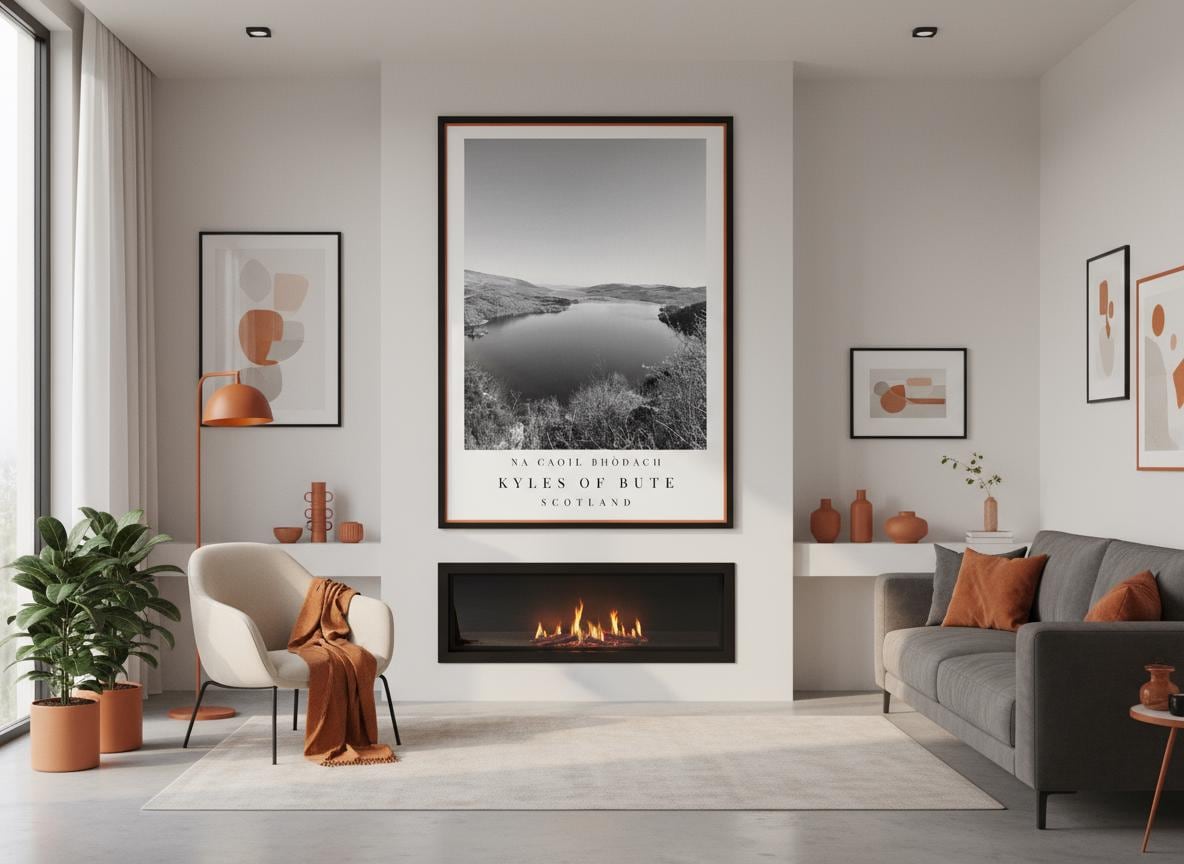 Bring the quiet elegance of Scotland’s western coast into your home with this striking Kyles Print — a high-resolution digital download rendered in bold black white print style. This fine art print showcases the tranquil waters, layered hills, and timeless atmosphere of Argyll’s coastal landscape through evocative landscape photography.