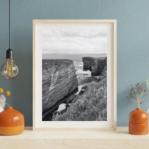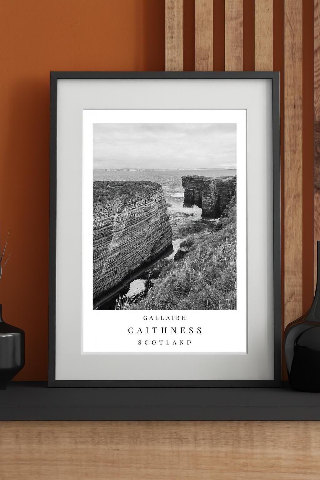 Unveil the raw beauty of Scotland’s northern coast with this elegant Caithness Print — a high-resolution digital download that captures the solitude of windswept cliffs, ancient ruins, and the timeless rhythm of sea meeting land. Presented in black white print style, this piece blends minimalist decor with the quiet drama of Scottish Highland art, making it a striking addition to any space.